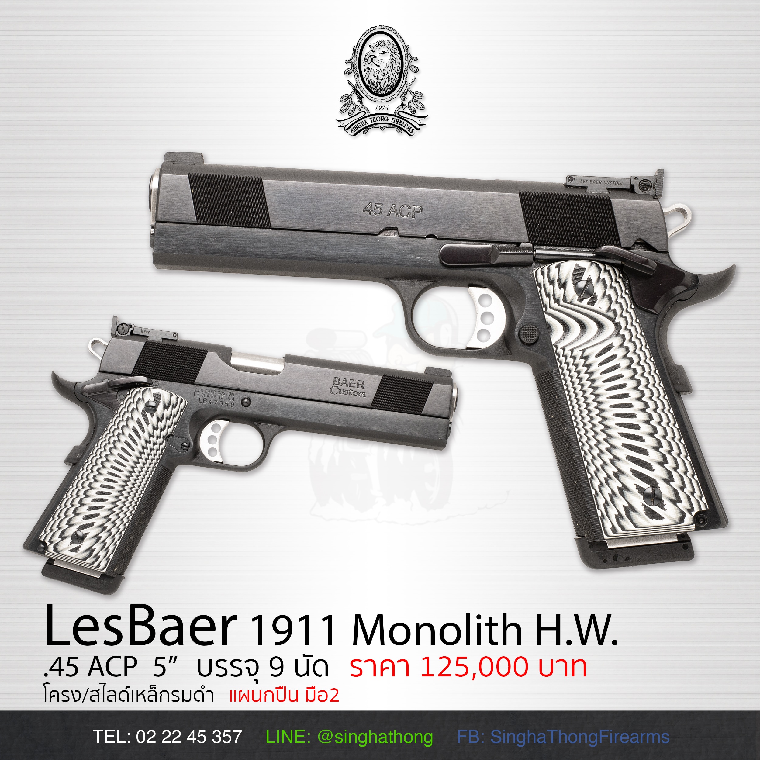 แผนกปืน มือ2 LesBaer 1911 Monolith H.W. โครง/สไลด์เหล็กรมดำ .45 ACP 5” บรรจุ 9 นัด (พร้อมแม็กอะไหล่ 1 อัน) ราคา 125,000 บาท